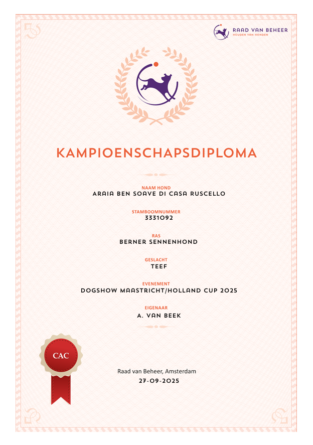 Holland Cup Junior winner - Holland Cup Winner - Crufts Qualification - Bos