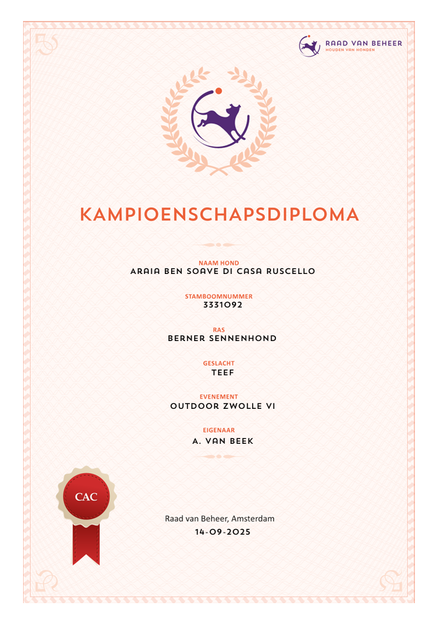 Juli 2025 Outdoor Hoogeveen Araia 1e - Uitmuntend - CAC - Beste jeugd - BOB
